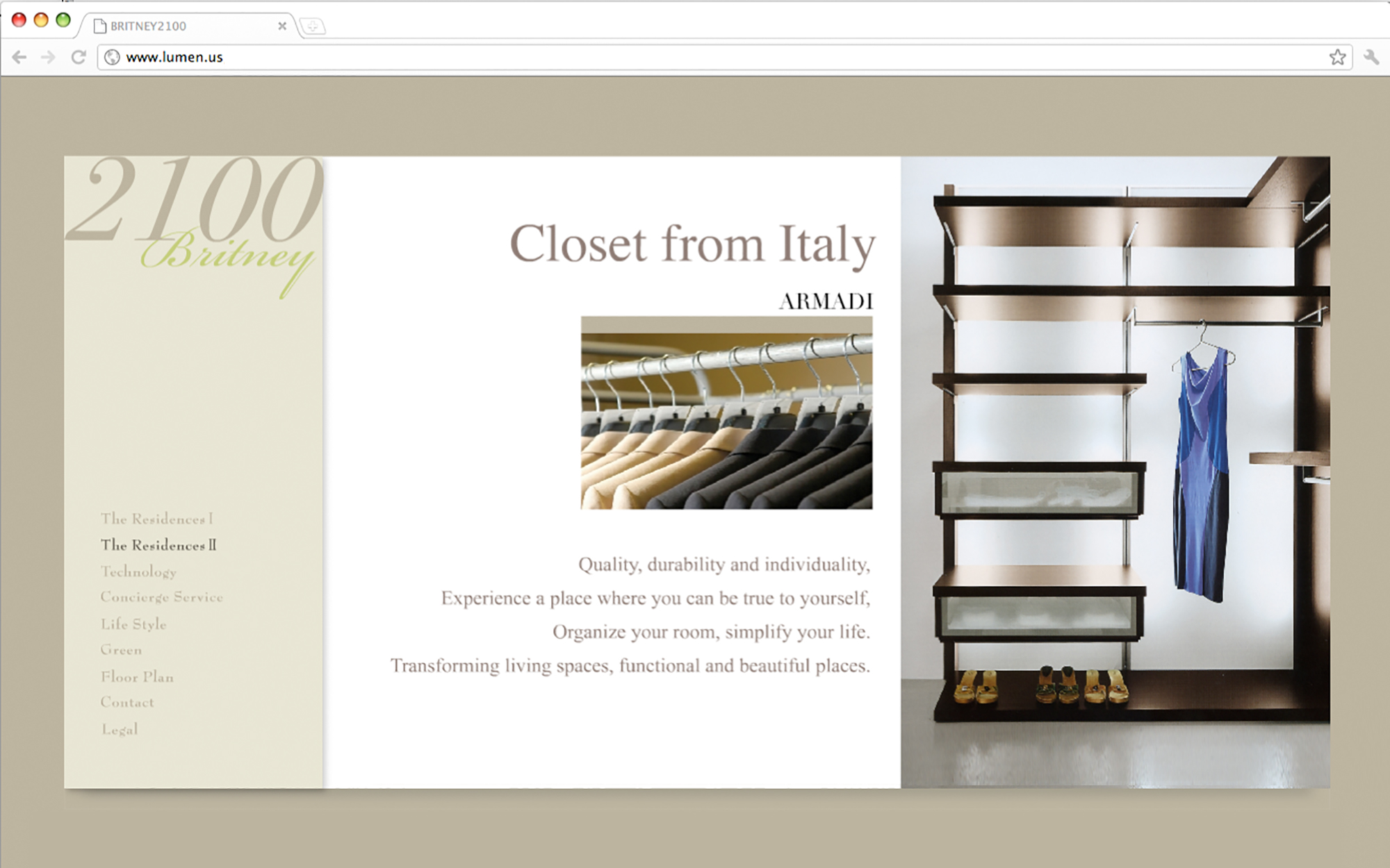 LumenLumen is a company that builds modern luxury apartments and business buildings. We have produced brochures and websites for their construction projects. I was in charge of the design leader for Lumen’s projects.