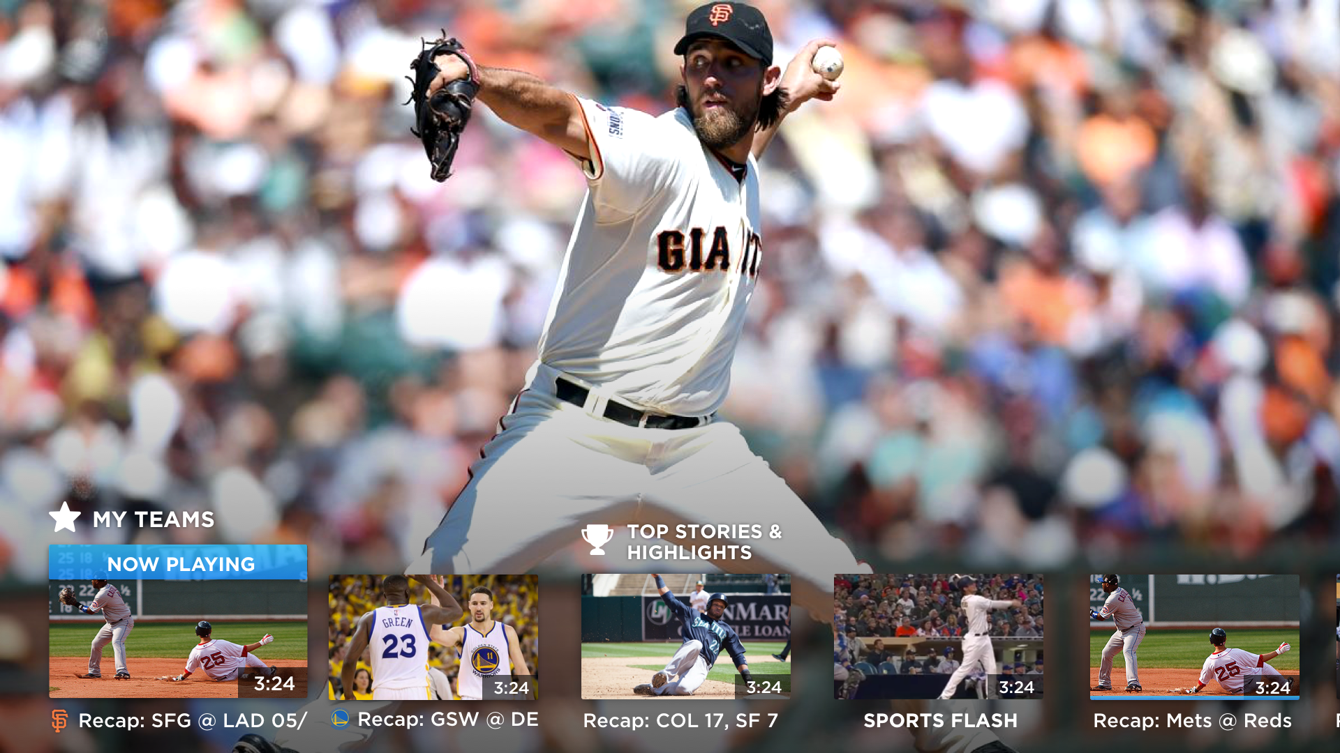 After setup your teams, you can view personalized highlights and recaps. Users can personalize the Sports Reel at the home view for the latest news and highlights from the teams and the leagues they care about.Screens
